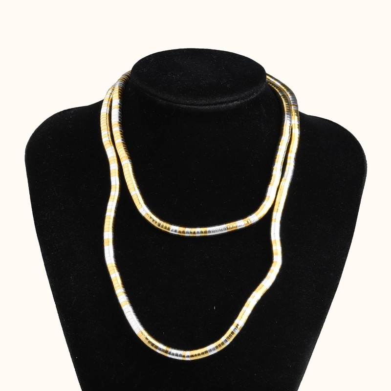 Styling a Skinny 6mm Snake Twist Necklace into different loops and intertwine them together.