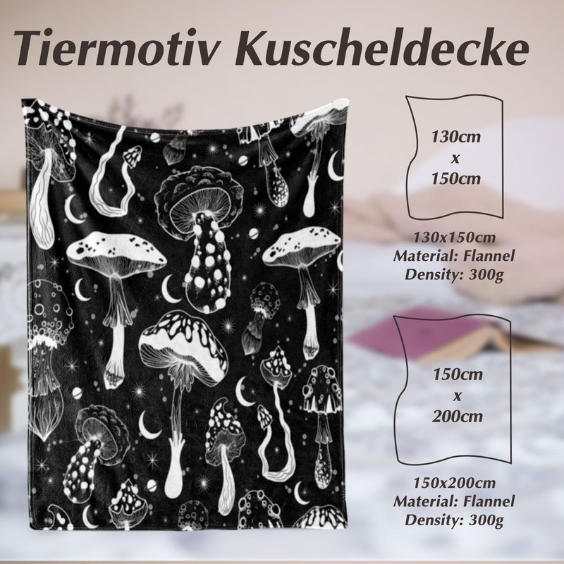 - Blanket size: we have 130 x 150 cm / 150 x 200 cm two sizes for you to choose from. This mushroom print cuddly blanket fluffy blankets offer you a warm hug, making you feel warm, comfortable and relaxed.