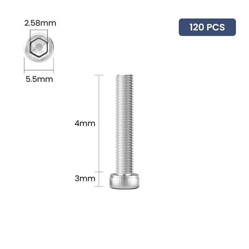 - Package Included: You will get 120pcs M3 bolts and 1pcs hex spanner.The M3 screw is made of 304 stainless-steel, may be slightly magnetic