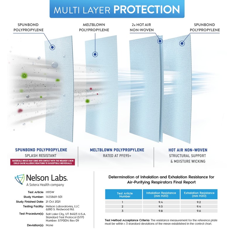 - Protección superior y transpirabilidad: la tecnología de filtración de 5 capas de BNX proporciona la máxima protección, comodidad y transpirabilidad. La capa de filtro activo de estas máscaras N95 se compone de polipropileno fundido de grado ultra alto con carga electrostática. Extremadamente transpirable hasta un 50% más transpirable que el requisito mínimo NIOSH.