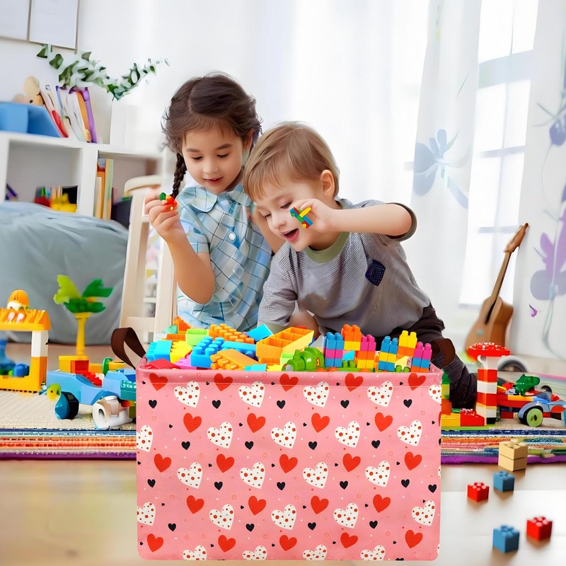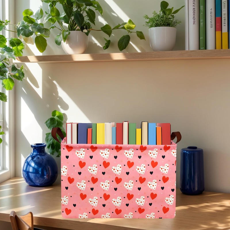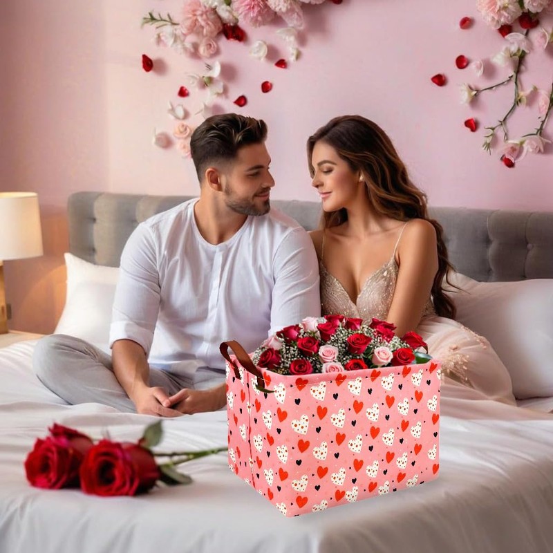 - 【BASKET USAGE】 The love heart pattern printed on the basket is suitable for giving to loved ones on Valentine's Day, storing exquisite gifts for the holiday. It can also be placed in bedrooms, children's rooms, baby rooms, laundry rooms, offices, used for organizing toys, books, clothing, gifts, diapers, and more.