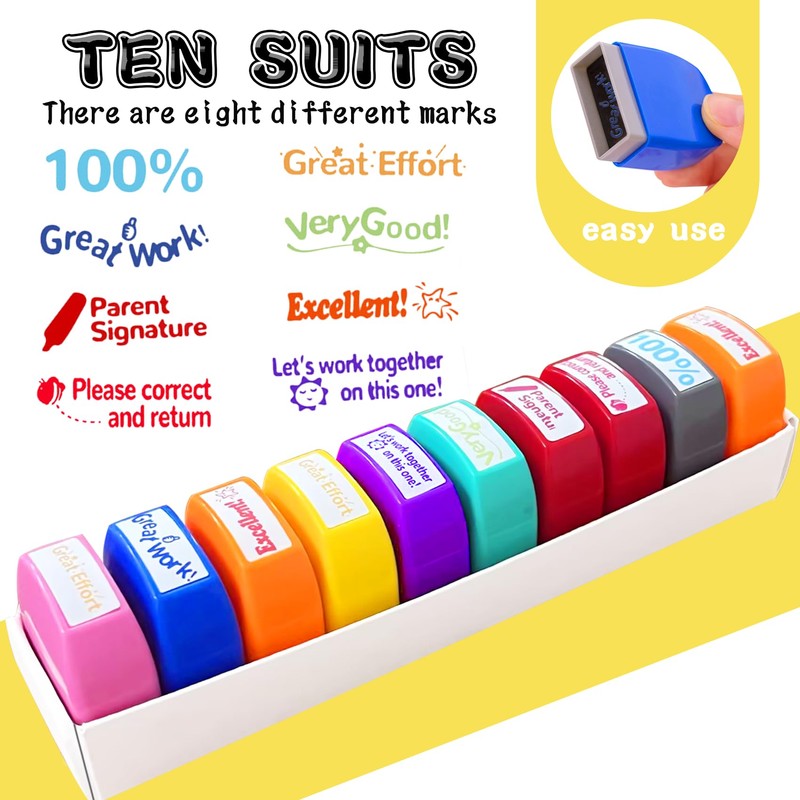 - Teacher Stamps Set: Teacher's Stamps are available in 8 different styles, totaling ten packs with different messages easy way to reward students by leaving inspiring messages, make them full of confidence in learning