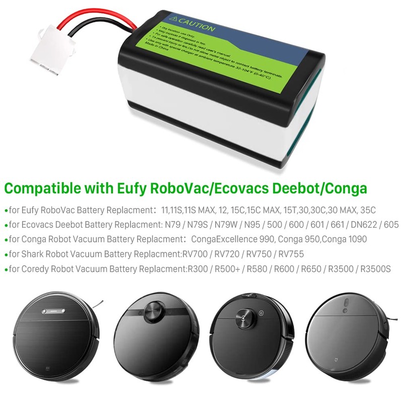 - 【COMPATIBLE MODELS】Our Brand New Li-ion Replacement Battery for Eufy RoboVac Battery-Compatible with Eufy RoboVac 11, 11S, 11S MAX, 12, 15C, 15C MAX, 15T, 30, 30C & Ecovacs Deebot N79, N79S, DN622 & Conga Excellence 990, 950, 1090. Please confirm your device model before ordering.