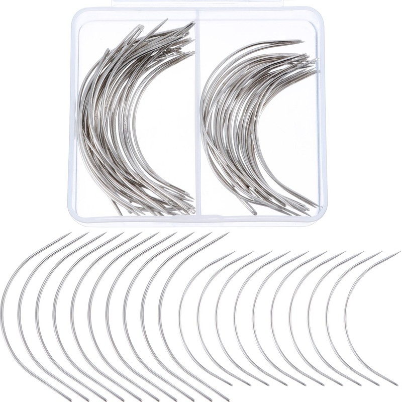 Boao 50 Pieces C Type Needle for Weave Curved Needles Hand Sewing Needles Sew in Weave Needles for Hair, Wig Making, Carpet Leather, Canvas Repairing, Modelling and Crafts