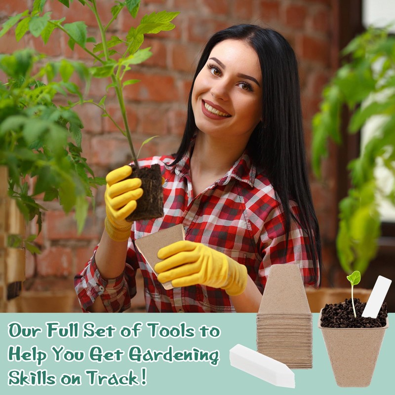 - Quality Materials: the seeds starter germination tray is made of quality plastic material, which is durable and not easy to deform and crack; The seed starter pots is made of pulp and plant fiber, the cup body is degradable, can be planted directly, helps prevent transplant shock, does not form a root ball or damage the root system; Please note: newly produced products may have a slight odor