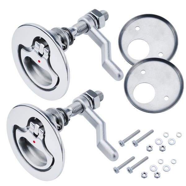 Boat Cam Latch, Marine 316 Stainless Steel Boat Hatch Latch 2 Pcs with Back Plate, Flush Pull Handle & Adjustable Arm Includes Installation Screws Marine Hatch Deck Hardware for Ships, Yachts, RVs