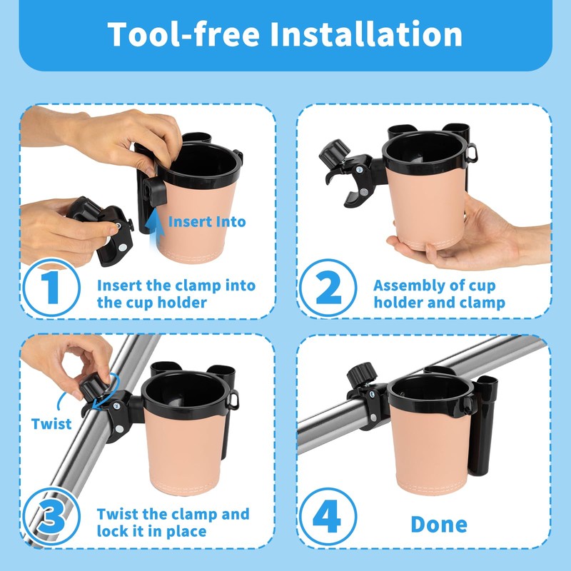 - Effortless Installation and Use The Easy Install Boat Cup Holder is designed for user convenience, allowing for quick and easy attachment to your boat's rail system. Its adjustable clamp mechanism ensures a snug fit, regardless of the rail's size or shape. This boat cup holder is perfect for those who want a hassle-free solution to keep their drinks and Mobile secure while boating or fishing, enhancing the overall experience on the water.