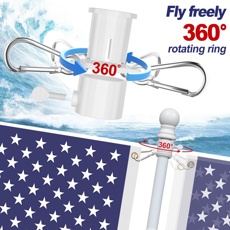 - No tangles: 360°rotating flag rings keeps your flag flying high in strong winds without wrapping ,showing your pride and be the most visible one anytime, anywhere