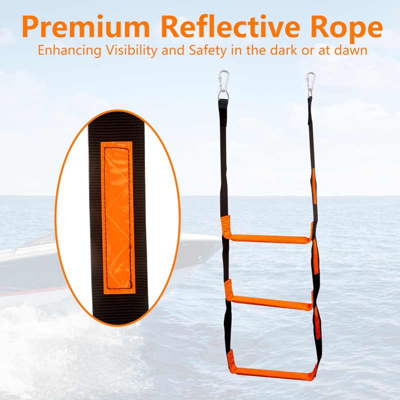 - Sturdy Strong Material: The 3 step rope ladder is made of premium UV resistant polyester and fiberglass material, the max load capacity can up to 880lbs, perfect for Inflatable Boat, Kayak, Motorboat, Canoeing and etc.