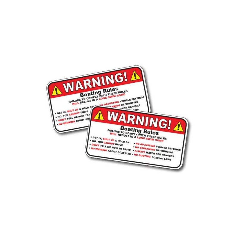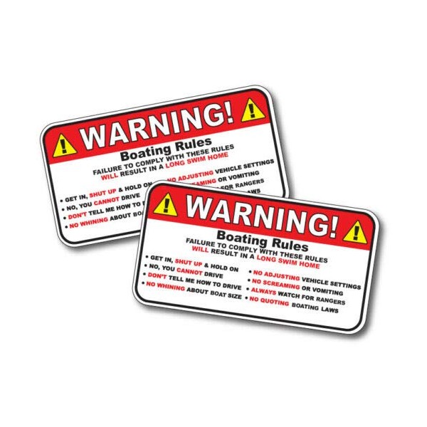 You are buying 2 ORIGINAL DESIGN 'WARNING Boating Rules' decal! Each decal is printed in 720 x 720 dpi on a big fancy Roland printer and then computer cut to shape! It will come ready to peel and stick onto any clean, smooth surface!