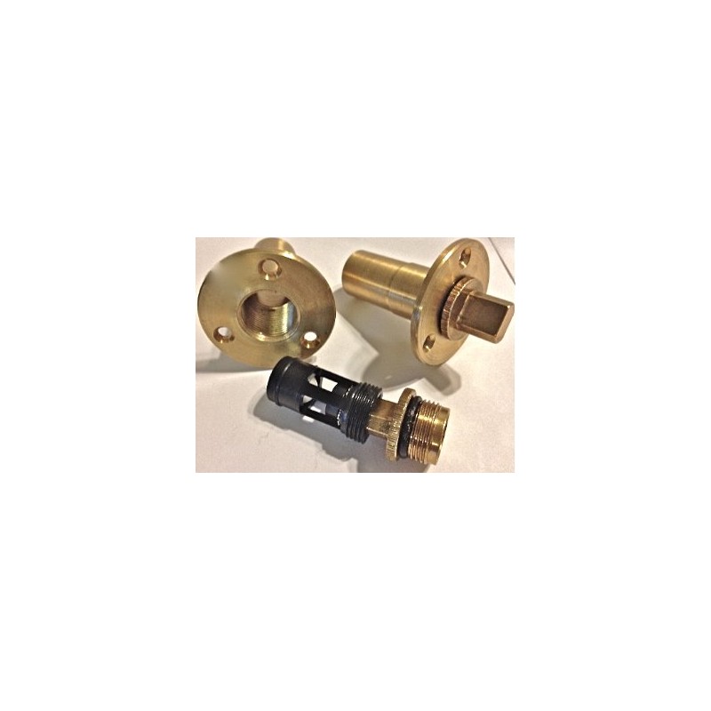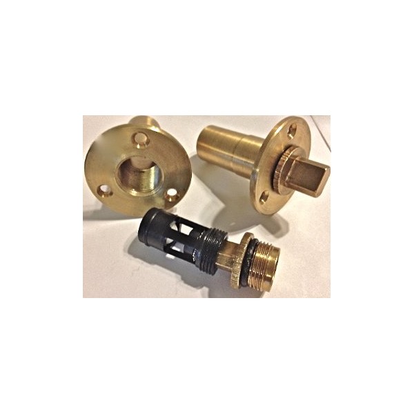 - Brass round flange with 3 screw hole pattern OEM direct fit. Removable inner core for easy cleaning by using the tab end of the plug and unscrewing CCW and screwing CW to reinstrall.