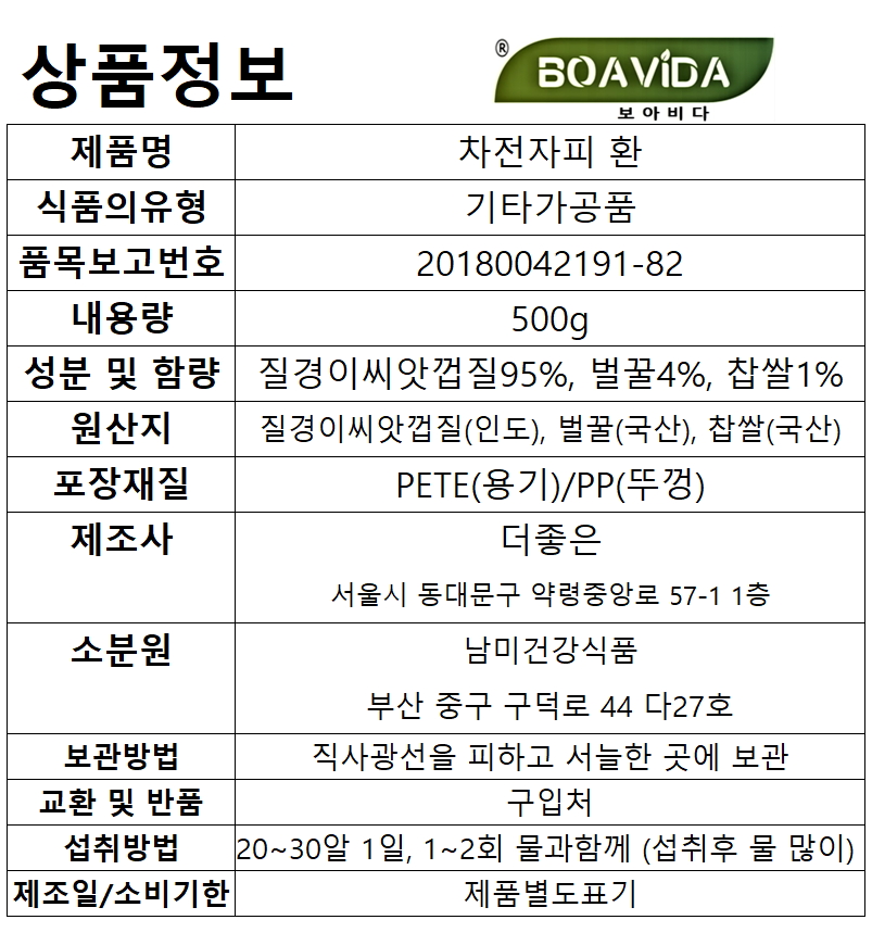 - Feature: Origin: Psyllium Husk (India), Honey (Korea), Glutinous Rice (Korea)