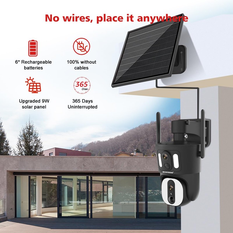 BOAVISION 4G LTE Cellular Security Camera Outdoor, Dual-Lens Wide View, No WiFi, Wireless Solar Battery Powered, 1080P Spotlight Color Night Vision, Local Storage, 2-Way Talk