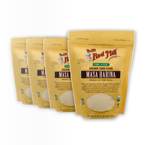 Bob's Red Mill Organic Masa Harina Flour, 24oz (Pack of 4) - Non GMO, Vegan, Kosher