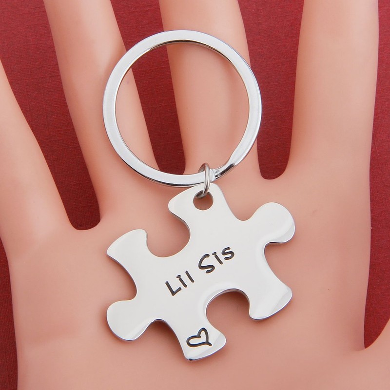 ♥This listing includes 3 keychains. Each keychains includes a stainless steel puzzle piece. Pieces are stamped with "Big Sis", "Mom" and "Lil Sis". Each piece hangs on an 1.18" diameter key ring.