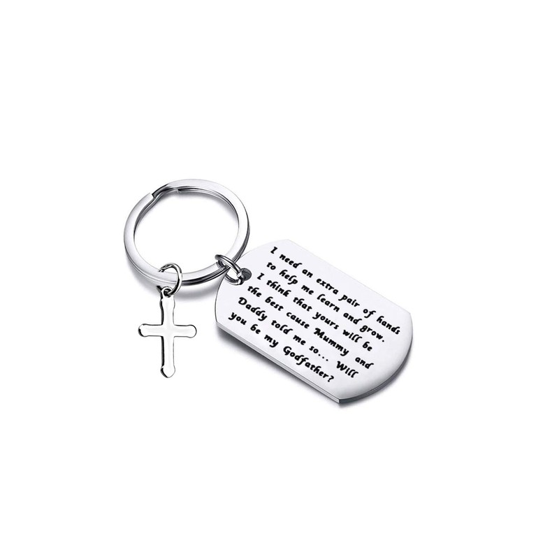 bobauna Godmother Keychain Godfather Keychain Godparent Keychain Set Will You Be My Godfather/Godmother First Communion Gift (godfather keychain)