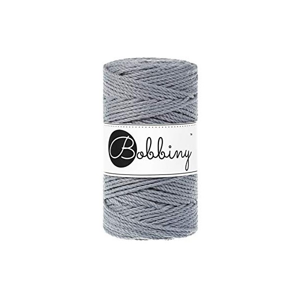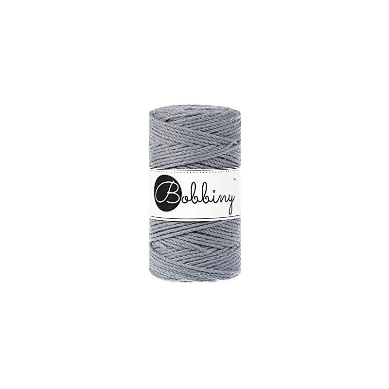 Bobbiny Macrame Cords 3 mm Triple Twisted - 100 m - 100% Cotton (Steel)