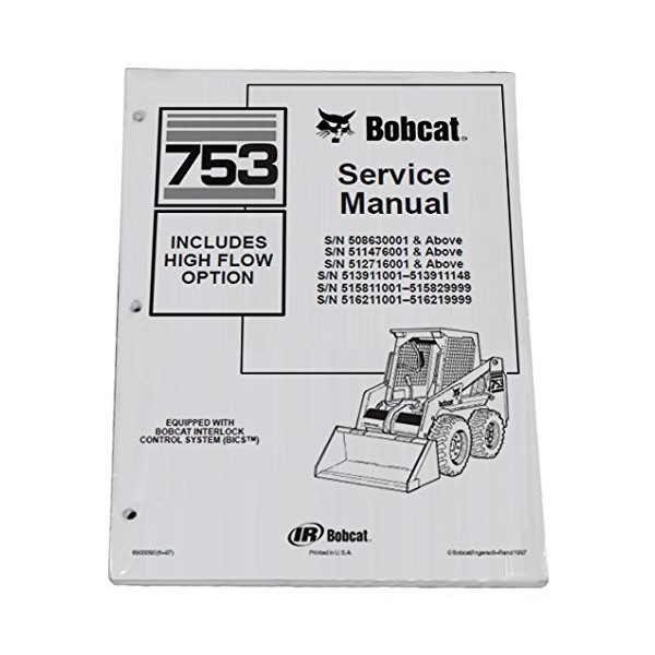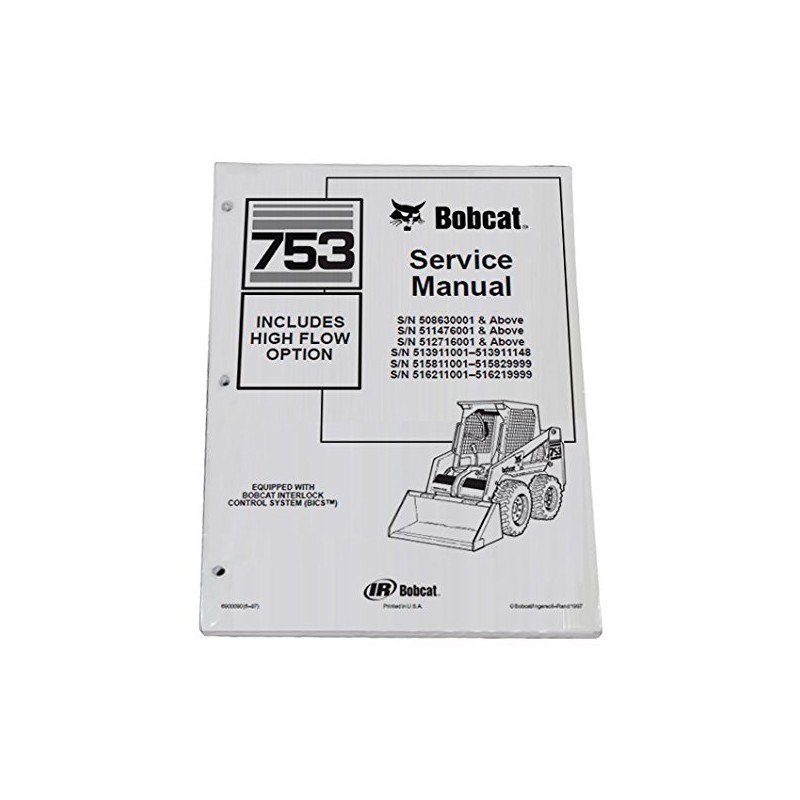 Vehicle: Bobcat 753 and Highflow BICS Parts Number: 6900090 Print Year: 1997 Pages: 569 Serial numbers: s/n 508630001 & Above s/n 511476001 & Above s/n 512716001 & Above s/n 513911001 - 513911148 s/n 515811001 - 515829999 s/n 516211001 - 516219999