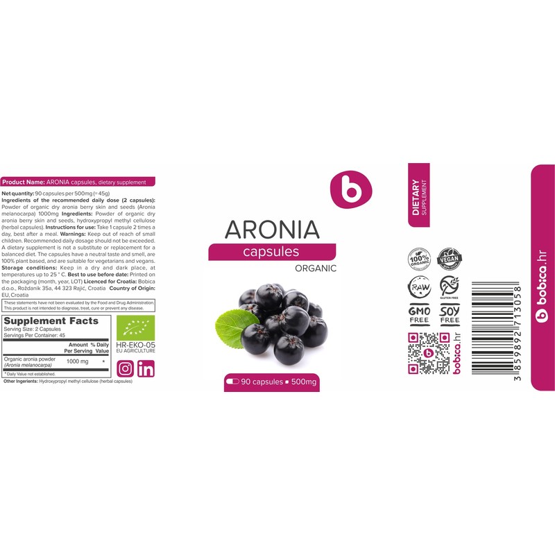 - ORGANIC Capsules contain dried organic powder extract from aronia berries skin and seeds