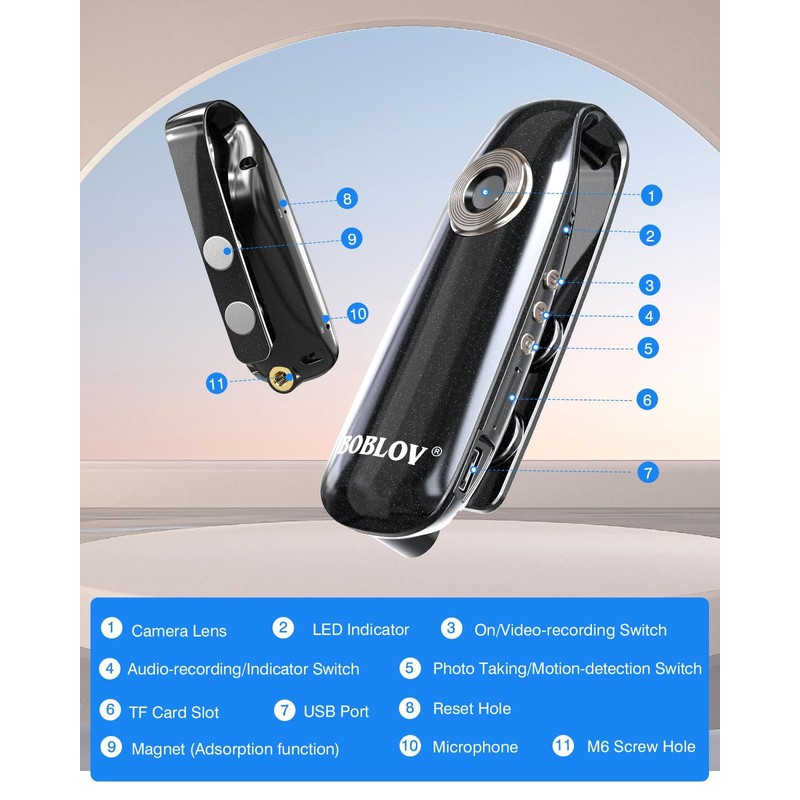 BOBLOV BOBLOV 007 128GB Mini Body Cameras, User Friendly, Portable Pocket Tiny Body Cams with Back Clip,1080P Small Camera Body Mounted Camera, Loop Recording for Bike/Pet/Home/Proof