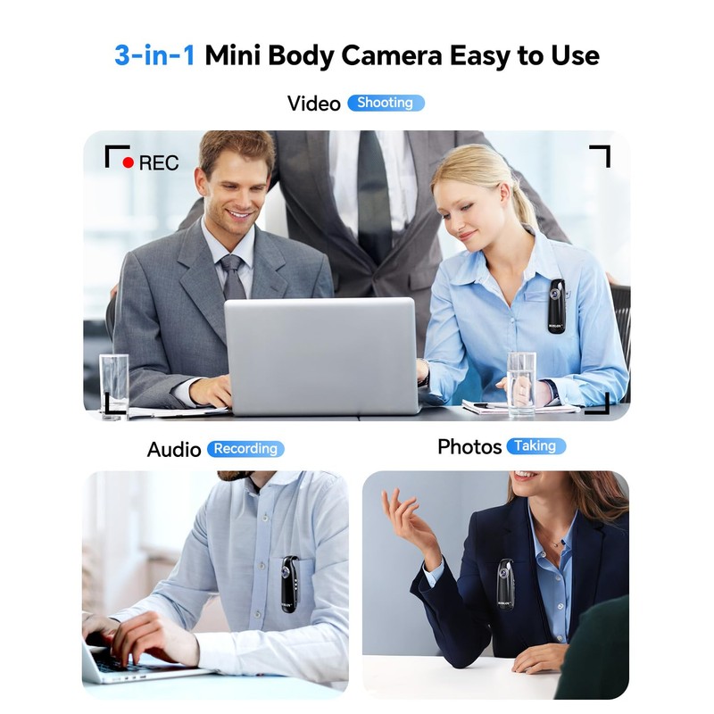 - 【Recording Time】: This mini body camera comes with a built-in high-quality 560mAh rechargeable battery, which can provide 3 hours of video recording after fully charged, and 7 hours of voice recording. Support Micro SD card up to 128GB Support recording while charging