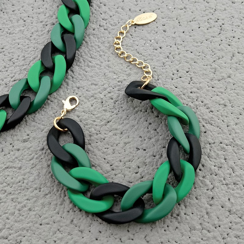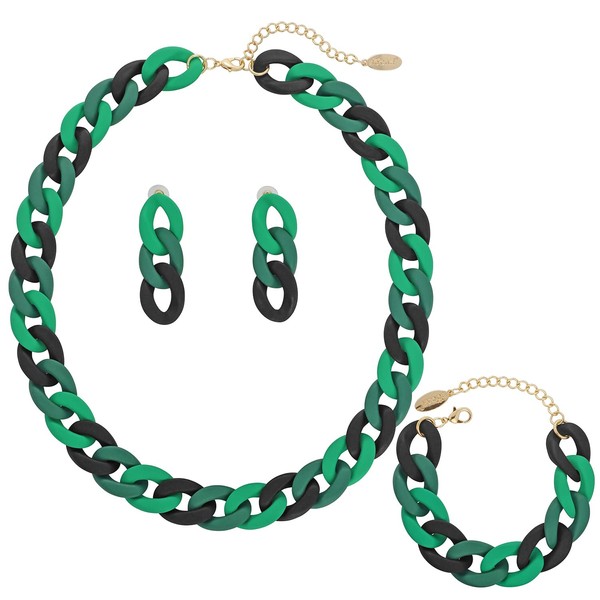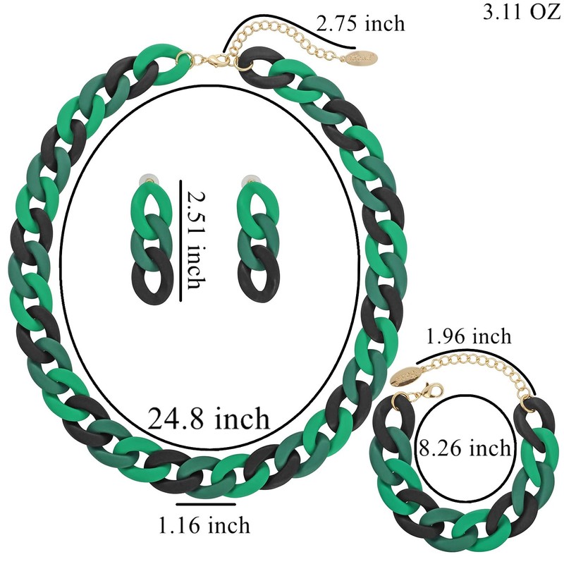 BOCAR Statement Acrylic Chunky Necklace for Women Cuban Link Chain Collar Necklace Bracelcet Earrings Fashion Costume Jewelry Set (NK-10668-Green Mix)