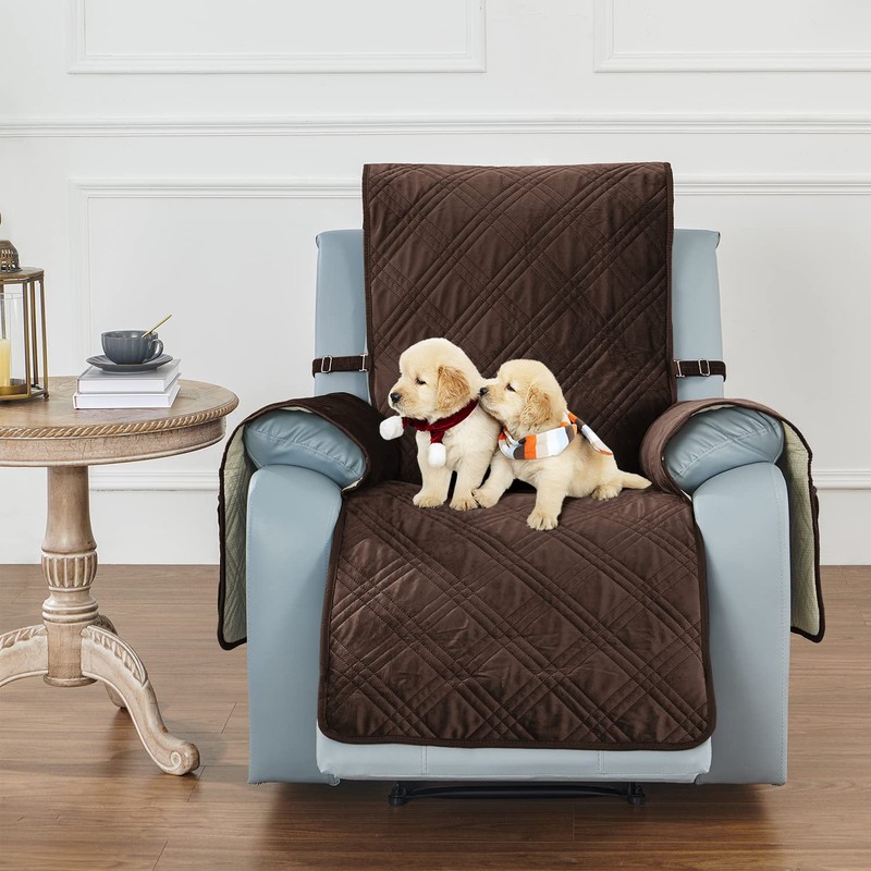 BOCTOPUG Velvet Recliner Chair Cover 23 Inches Sofa Slipcover Waterproof Recliner Slipcover Reversible Sofa Cover Water Resistant Couch Cover for Dogs Pets (Brown, 23")