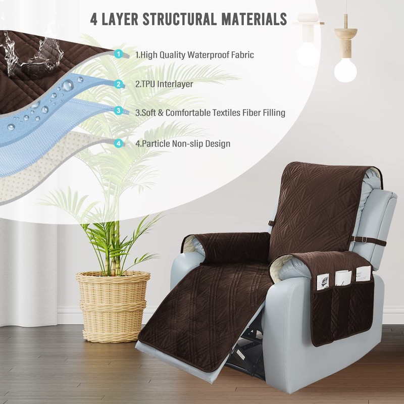 - 4-LAYERS MATERIAL - This premium quilted furniture protector is constructed with multi layers fabric. Chemicals free and ECO friendly, high safety to kids and pets.