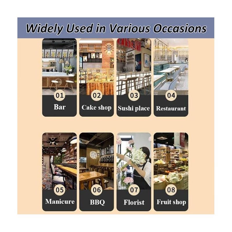 This fundamental kitchen essential can be used in Home, Kitchen, Restaurant, Bars, Workshops, Hotels, Party rooms, Bistro, Garden , Craft tables, Thanksgiving or Christmas dinners, Coffee gatherings and BBQ parties.