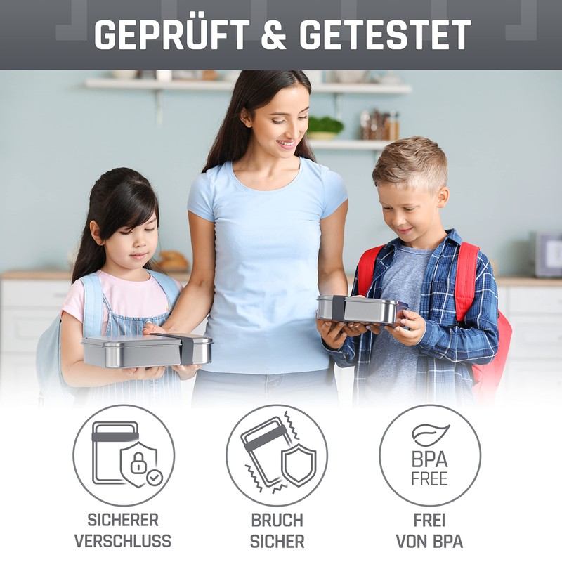 boddels Stainless Steel Lunch Box with Compartments, 800 ml, Includes Flexible Divider, Children's Lunch Box with Dividers, Lunch Box for Snacks
