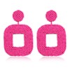 Boderier Beaded Drop Hot Pink Earrings Bohemian Wire Wrapped Beaded Square Hoop Dangle Statement Earrings (Hot Pink)