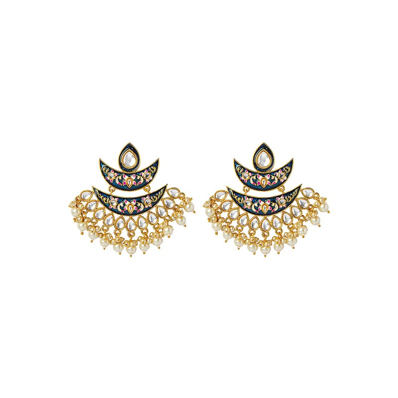 Bodha Traditional Indian Handcrafted Gold Plated Designer Traditional Ethnic Meenakari Kundan Chandbali Earrings Women (SJ_1875_BL)