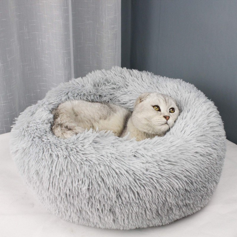 - Material:Make of attractive luxurious faux fur,macarons color donut shape.Round pet bed offers a safe, Ideal for a cat or small dog to snooze.Your little furry friends will feel surrounded by love and warmth, allowing them to experience truly restful sleep. restful sleep for improved behavior and better health.