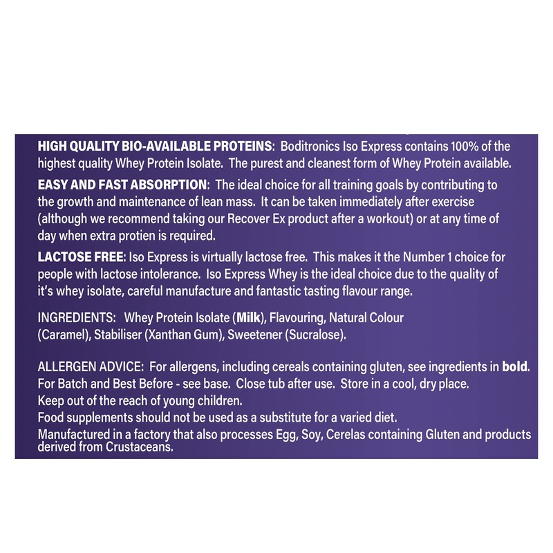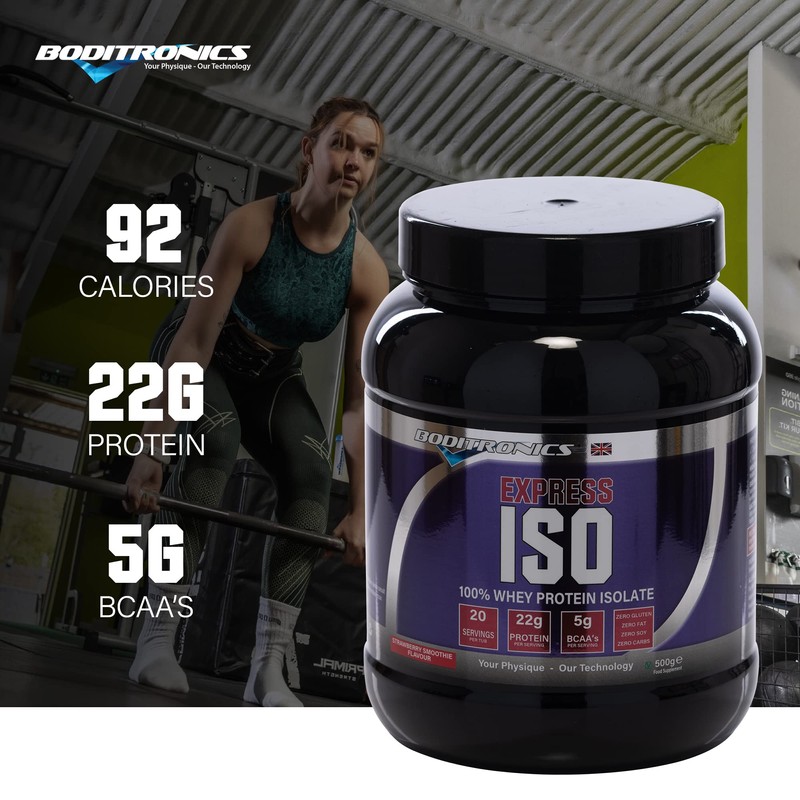 Boditronics 500g Iso Express Whey 100% Whey Isolate Protein Powder with Occurring Amino Acid, BCAAs & Glutamine Support to Lean Mass, Muscle Growth Protein Powder