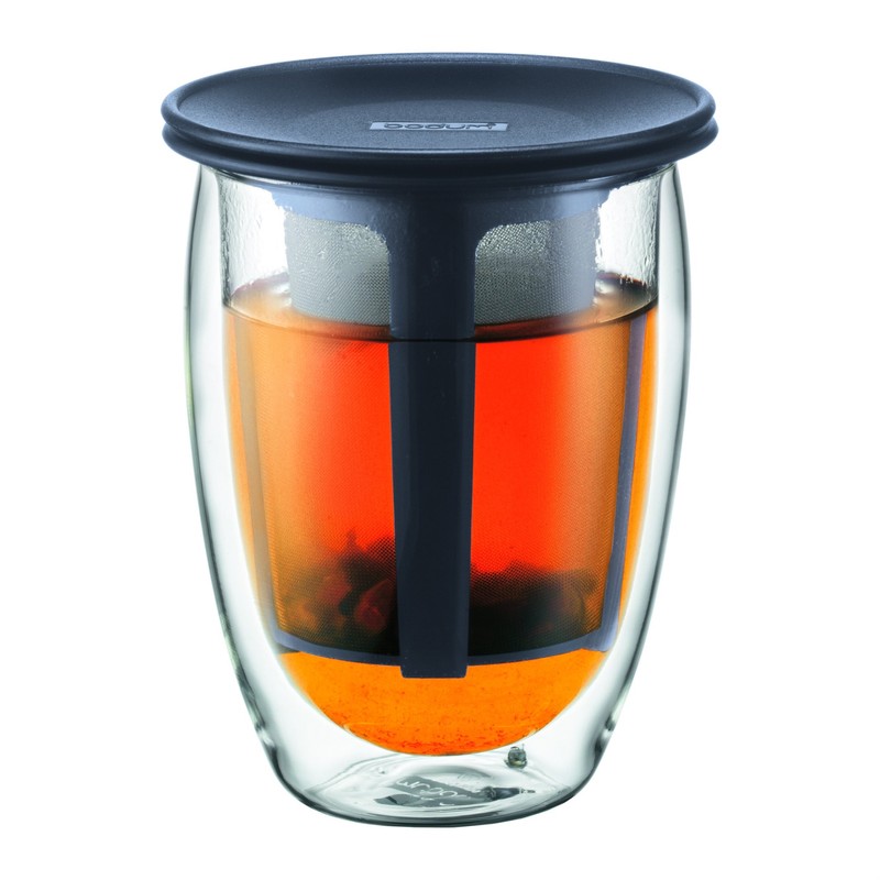BODUM ボダム グラス コップ ティーフィルター 茶こし TEA FOR ONE ティーフォーワン ティーフィルター付き ダブルウォール 350ml ブラック ステンレスフィルター ガラスビーカー 紅茶 【正規品】 K11153-01