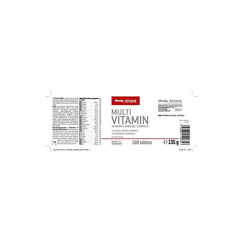 Body Attack Multivitamin Tablets – 100 Tablets for Daily Vitality