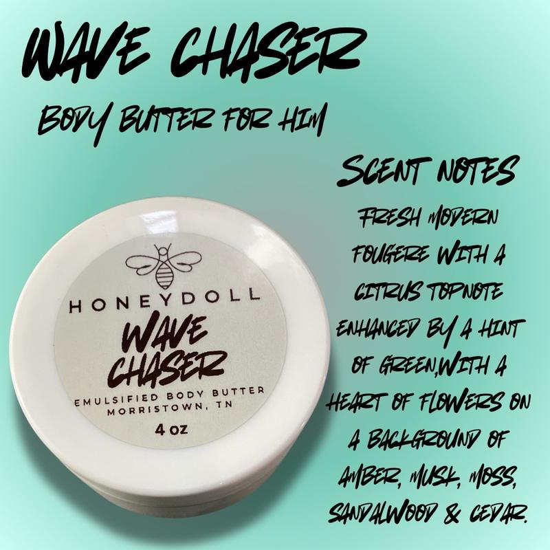 Wave Chaser is a fresh and modern fougere with a citrus topnote and a heart of flowers on a background of amber, musk, moss, sandalwood, and cedar. This scent is perfect for men who want to smell fresh and daring. The top note of citrus and a hint of green adds a refreshing and invigorating scent to the body butter, while the heart of flowers provides a natural and calming aroma. The base notes of amber, musk, moss, sandalwood, and cedar provide a warm and woody scent that is both masculine and sophisticated.