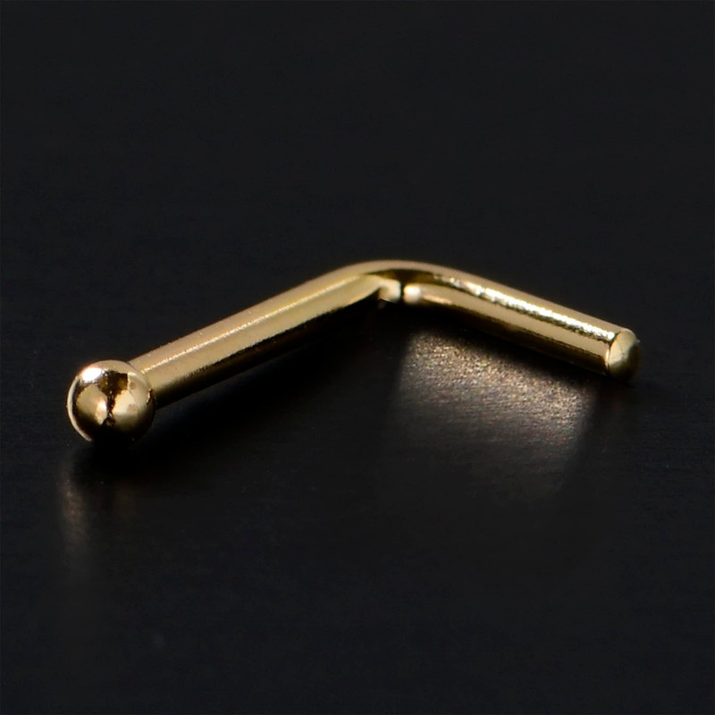 Body Candy 18 Gauge 14k Yellow Gold 1.5mm Ball L-Shaped Nose Ring