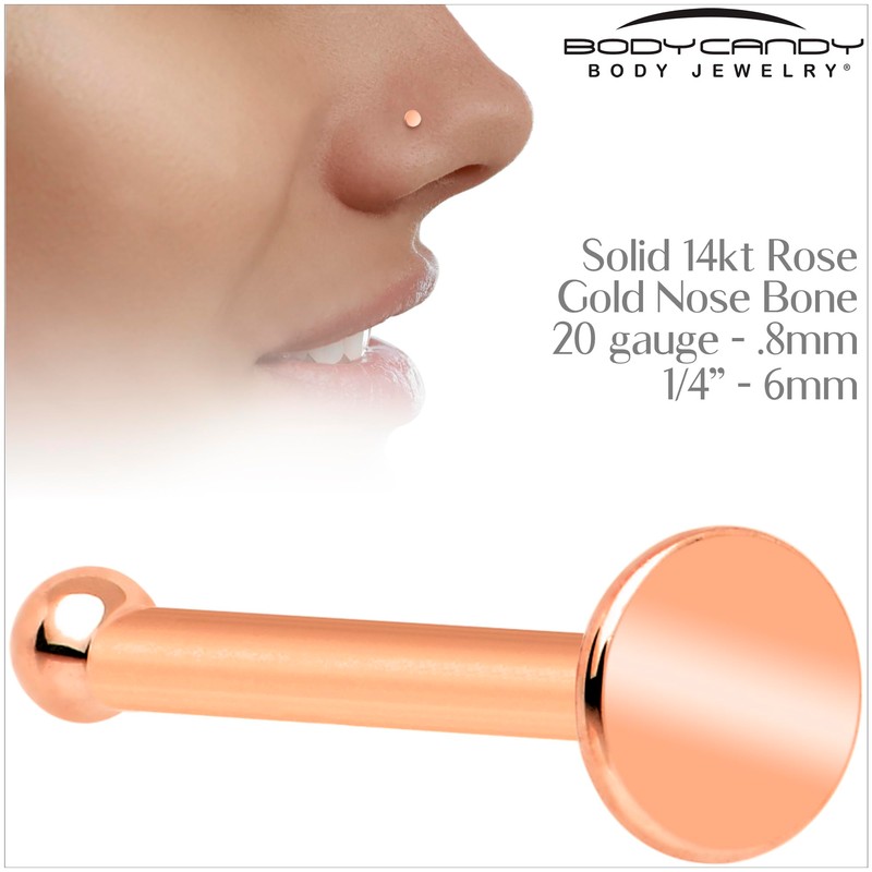 Body Candy 20 Gauge Nose Ring - Solid 14k Rose Gold Nose Bone Nose Ring Flat Disc Nose Stud for Women Men