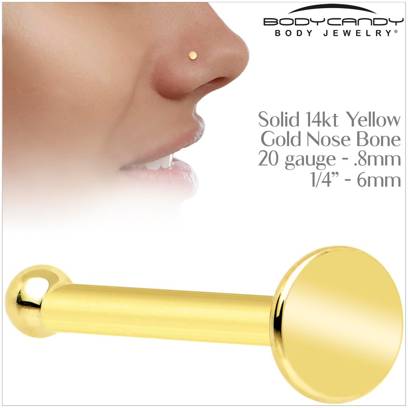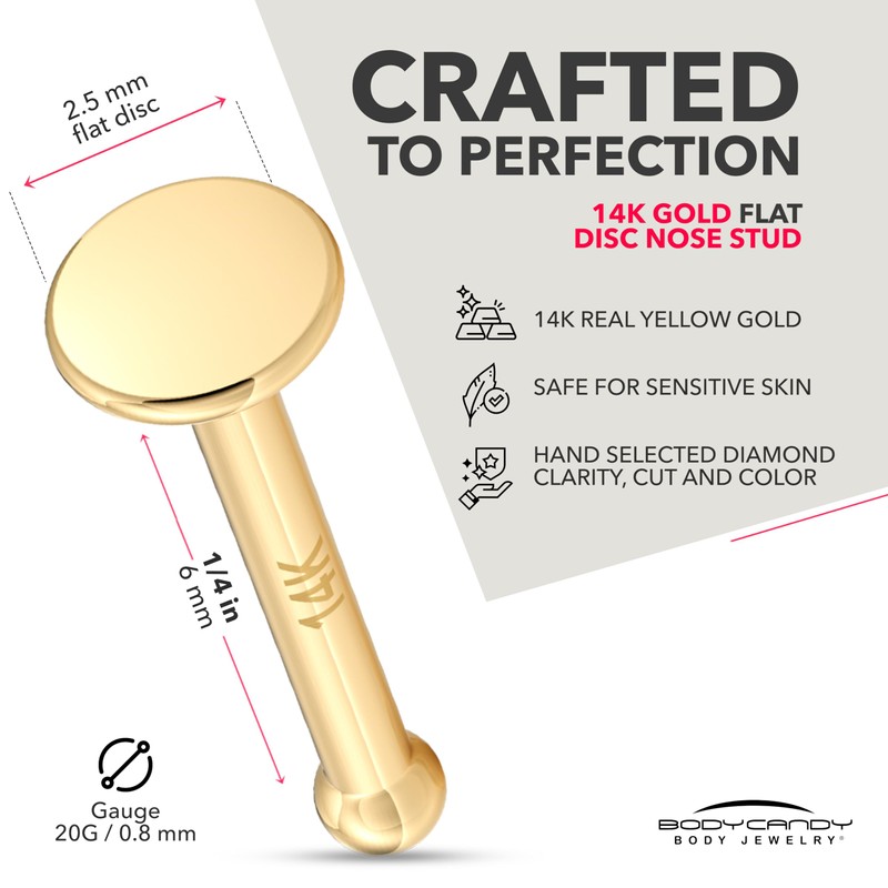 Body Candy 20 Gauge Nose Ring - Solid 14k Yellow Gold Nose Bone Nose Ring Flat Disc Nose Stud for Women Men