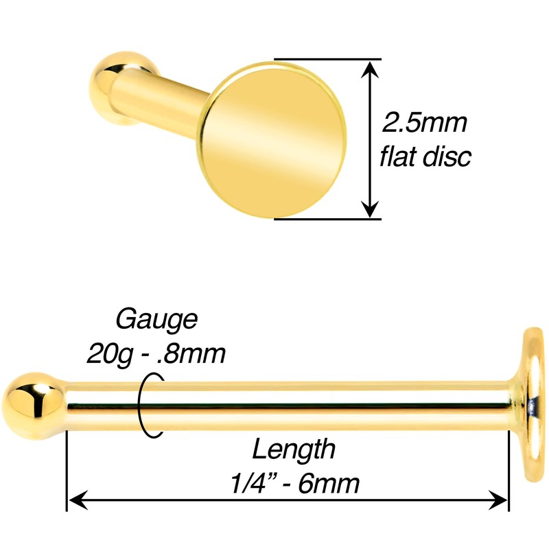 - PERFECT FIT & SECURE DESIGN – Designed in 20 gauge with a 2.5mm flat disc end, this nose bone stud stays securely in place while providing a sleek and minimal look for comfortable and worry-free wear.