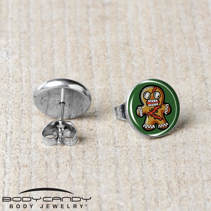 - Fashion stainless steel stud earrings body jewelry with gingerbread cookie zombie charms