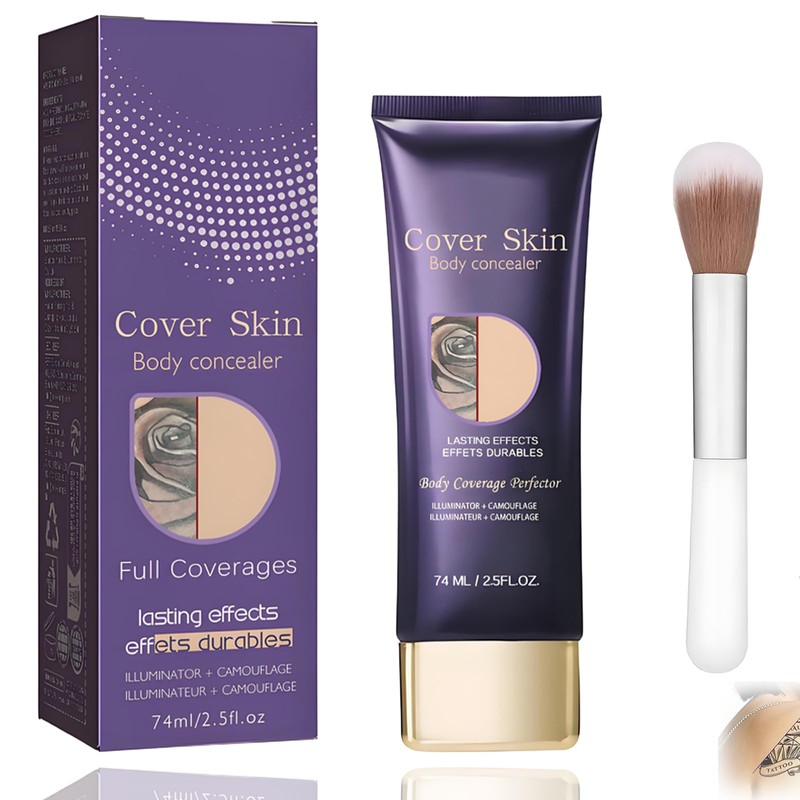 Body Coverage Perfector for Legs – Full Coverage for Tattoos & Imperfections – Long-Lasting, Buildable Formula Includes Precision Concealer Brush for Seamless Application (1PCS)