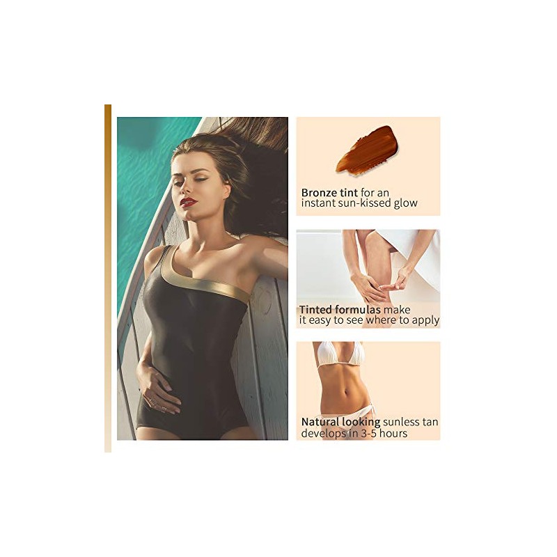- MEDIUM DARK TAN IN AN INSTANT: This salon-quality sunless tanning in a bottle will give you a natural-looking year-round tan without lying under the sun and exposed to harmful ultraviolet rays causing skin damage and get high risk of skin cancer. Very easy to use! Just spray into the skin, let dry and you're done! Expect that natural-looking sunless tan that develops in 3-5 hours. Definitely, your way to achieving that desired 'sexy tan' look without the sun!