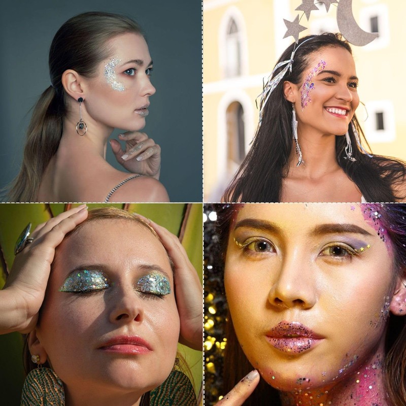 - 【All Skin Types & Use for Many Occasions】This body glitter caters to all skin types. Versatility is glitter’s forte—effortlessly apply it to enhance full - face makeup, add a touch of sparkle to your body, hair, lip, or use it to embellish costumes. Whether you're celebrating a birthday, joining in festive holidays, dancing at music festivals, or attending any special event, this glitter gel seamlessly adapts to various application needs.