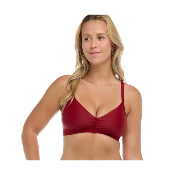 Body Glove Women's Standard Smoothies Drew Solid D, DD, E, F Cup Bikini Top Swimsuit with Adjustable 2-Way Back Detail, Cranberry