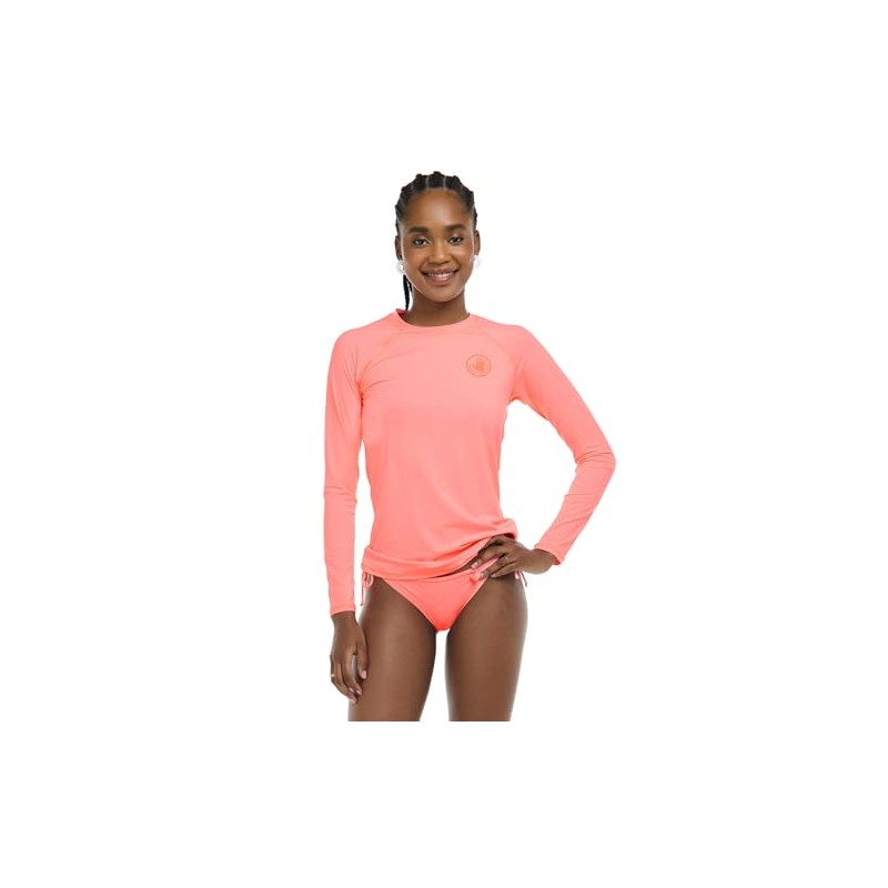Body Glove Women's Standard Smoothies Sleek Solid Long Sleeve Rashguard with UPF 50+, Coral, Medium