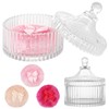 - Elegant Glass Container: Featuring a yurt-shaped design with chic, embossed stripes, the glass container adds a touch of elegance to your vanity; the crystal-clear glass body is sturdy and sophisticated, great for storing cosmetics in style
