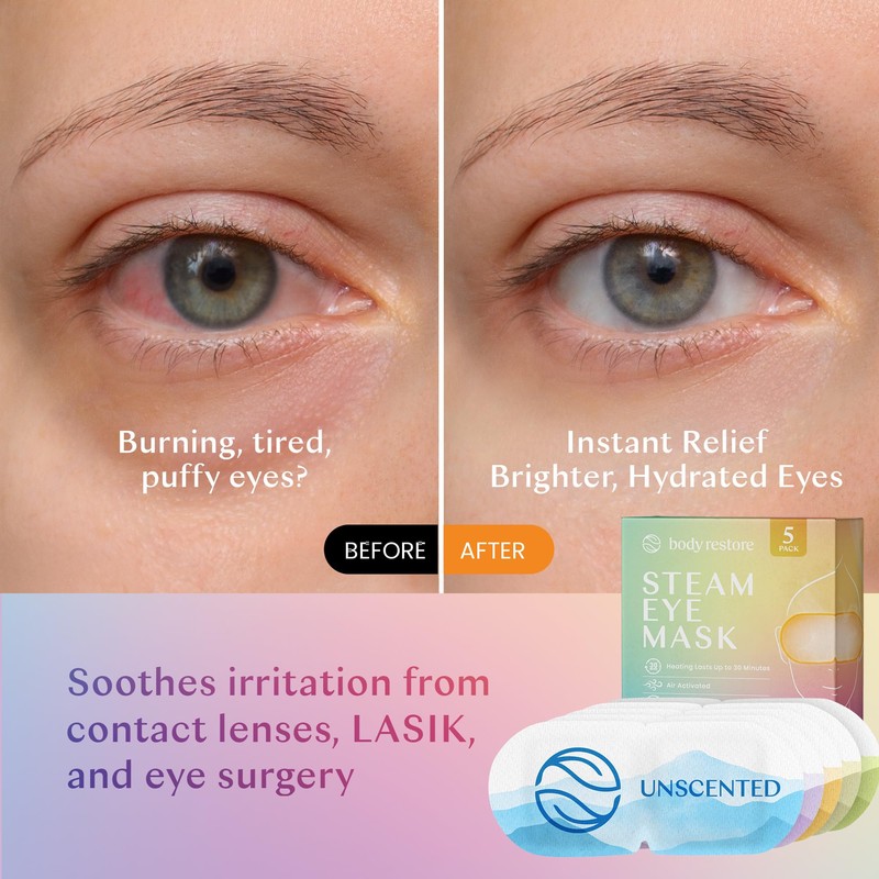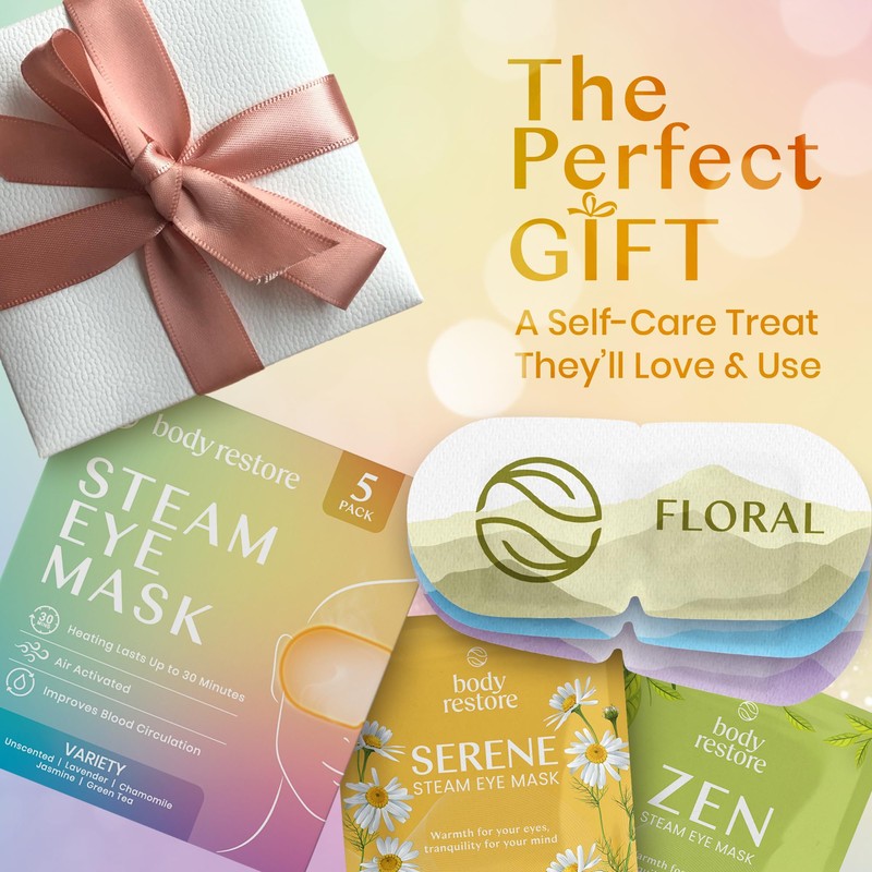 Body Restore Self Heated Steam Eye Mask 5 Pack - Birthday Gifts for Women, Men, Stye Eye Treatment, Relaxation, Travel Essentials - Variety