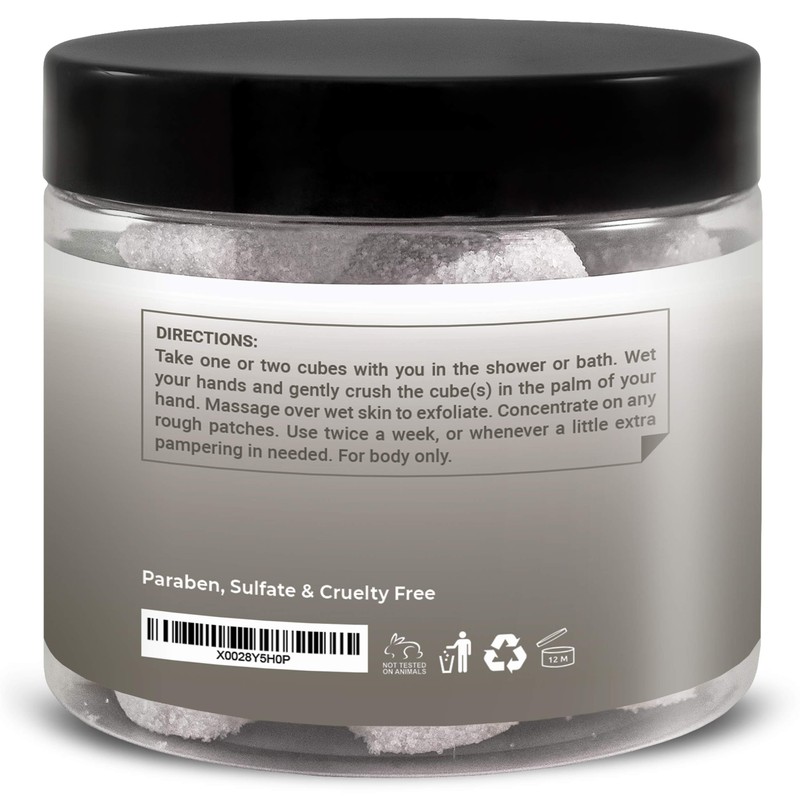 - MESS FREE EXFOLIATION Our Unique formula does everything a body scrub do plus the convenience of a pre-measured cube. Take 1 or 2 cubes in shower or bath for all body exfoliation